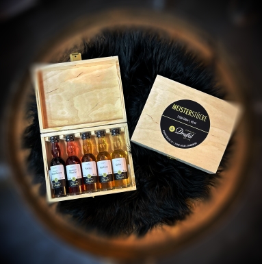 Edel verpackt in hochwertigen Holzboxen haben wir für Sie kleine Tasting-Sets zusammengestellt.
